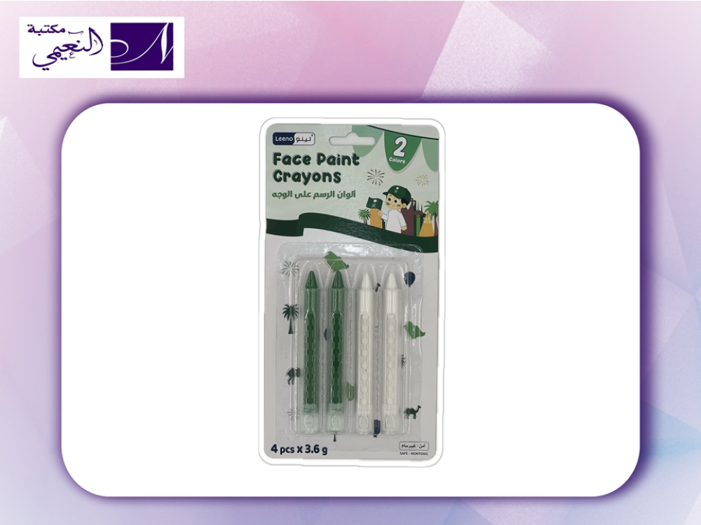 ألوان وجه ليينو 0369 – أخضر وأبيض خصيصًا للاحتفال باليوم الوطني. آمنة على البشرة، سهلة الغسل بالماء، تضفي أجواءً رائعة للحفلات والمناسبات الوطنية.